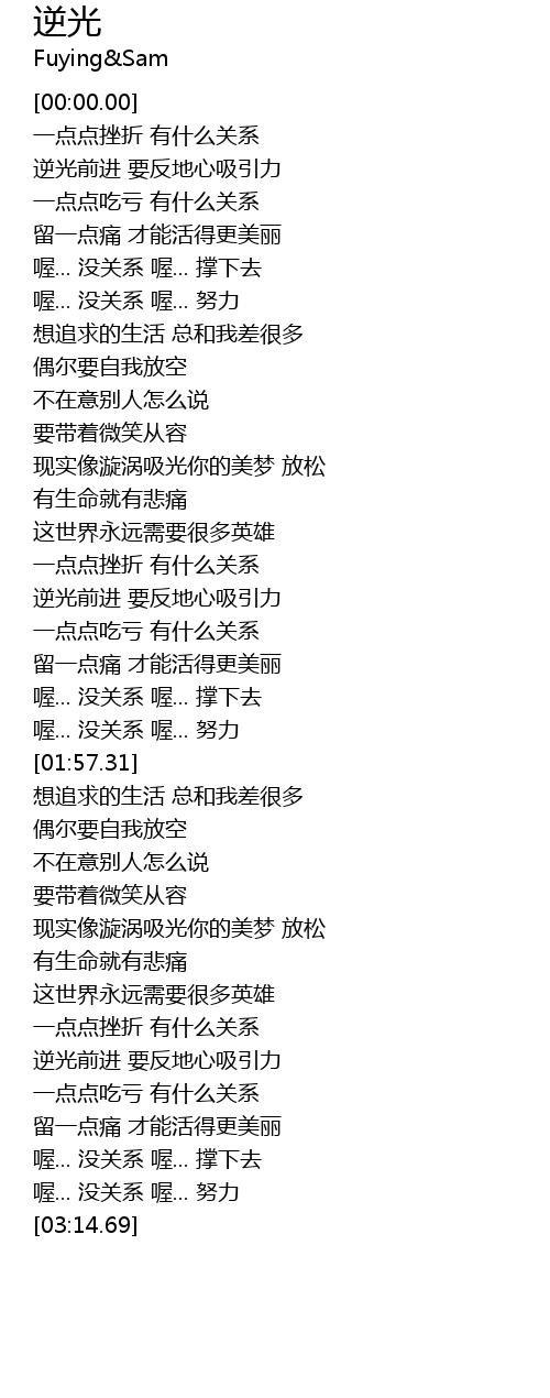 | [01:32.11] | 逆光前进 要反地心吸引力 |