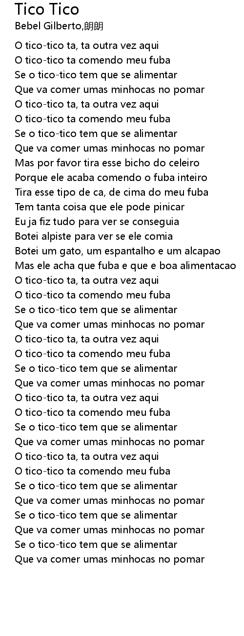 O tico-tico ta comendo meu fuba |