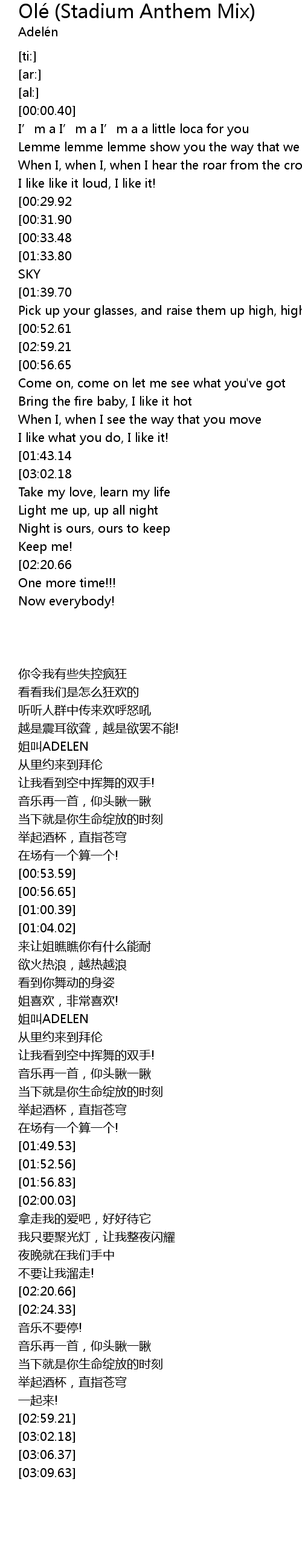 | [02:24.33][02:20.66] | Ole! Ole! Ole! Ole! |