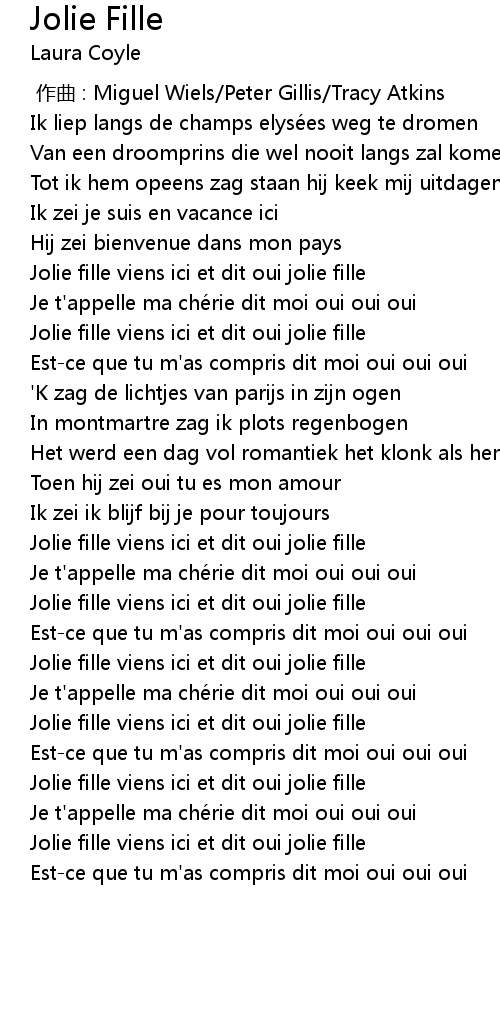 | [00:39.53] | Jolie fille viens ici et dit oui jolie fille |