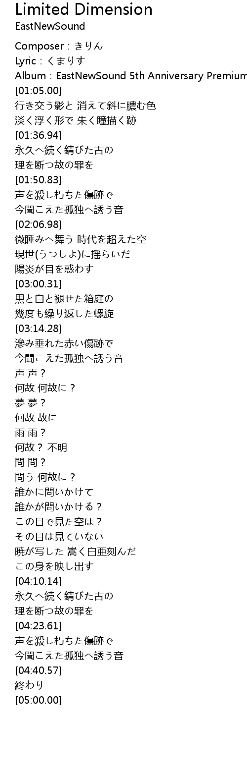 | [00:52.00] | Album:EastNewSound 5th Anniversary Premium Best |