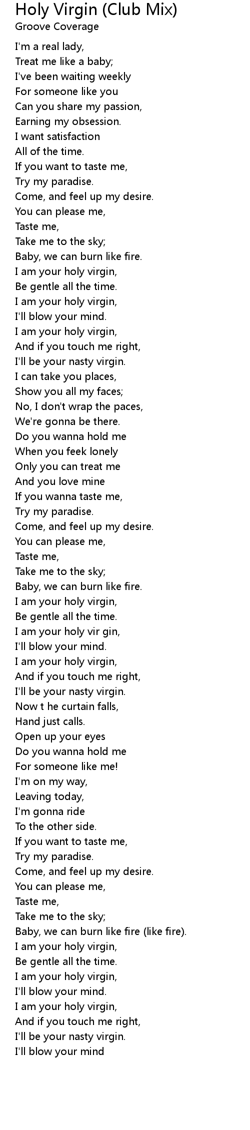 Holy Virgin (Club Mix) Lyrics