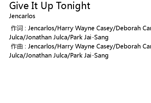 | [00:00.000] | 作词 : Jencarlos/Harry Wayne Casey/Deborah Carter Hall/David Julca/Jonathan Julca/Park Jai-Sang |