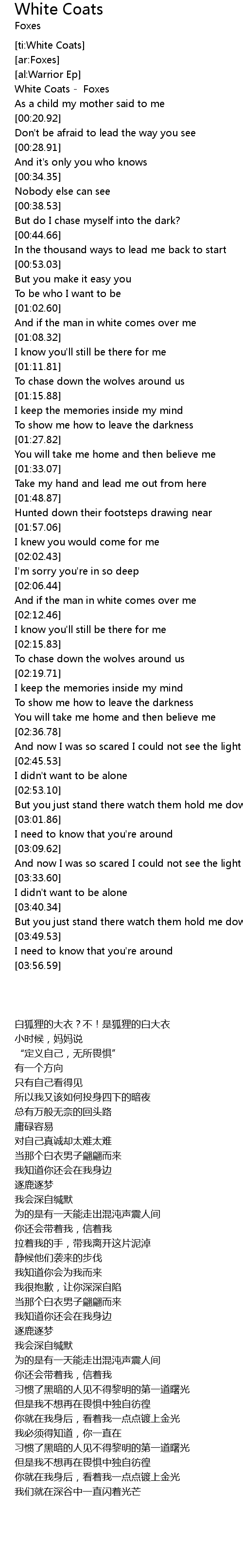 | [00:00.65] | White Coats - Foxes |