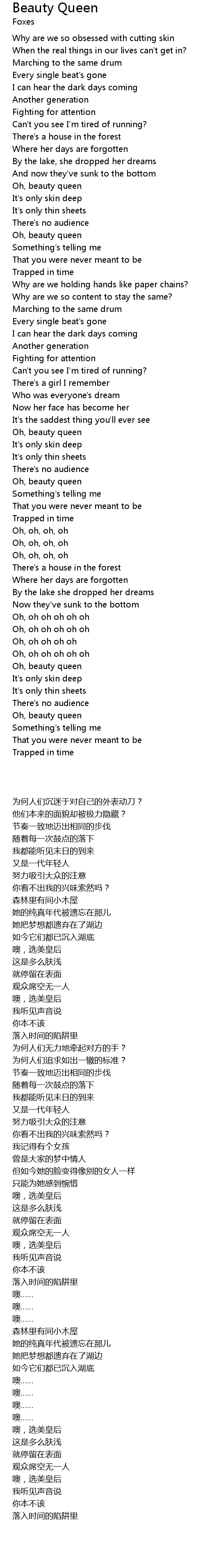 | [02:19.74] | Oh, beauty queen |