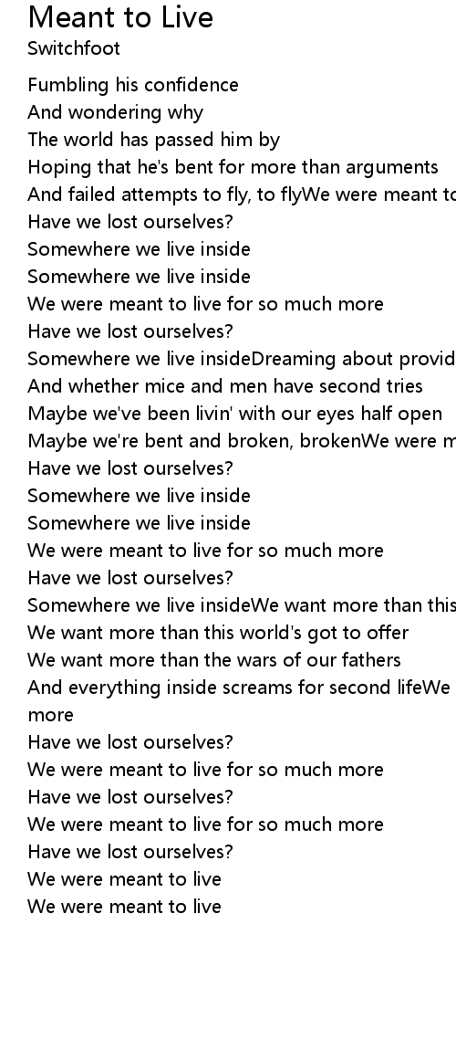 And everything inside screams for second lifeWe were meant to live for so much more |