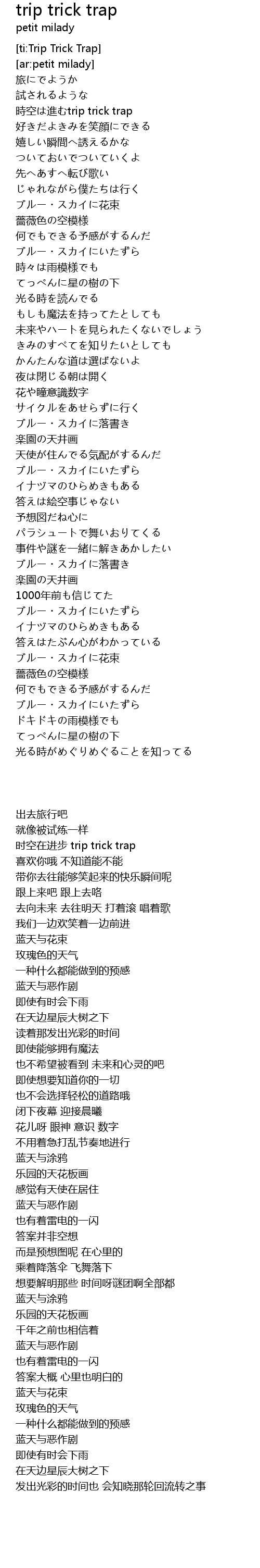 | [00:22.133] | shí kōng jìn trip trick trap |