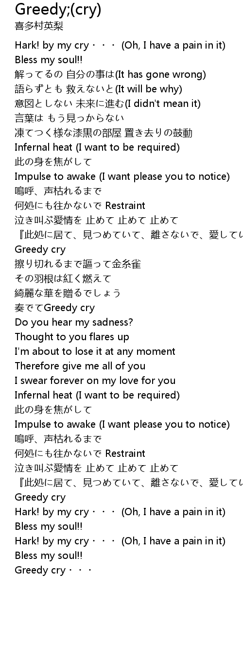 | Hark! by my cry・・・ (Oh, I have a pain in it) | |