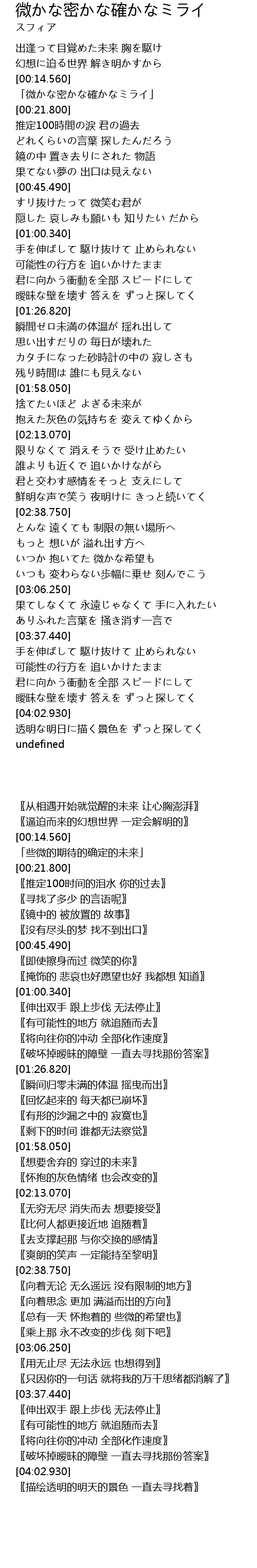 | [00:15.800] | 「微かな密かな確かなミライ」 |