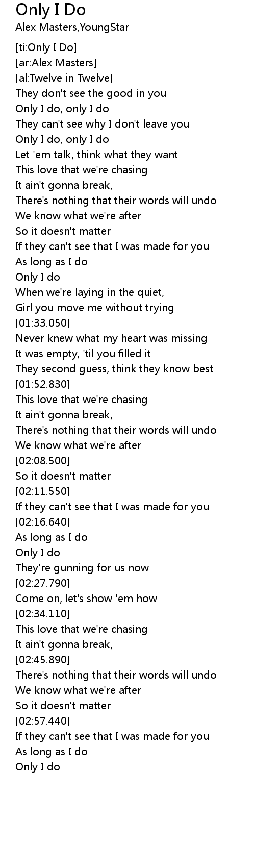 | [00:19.910] | Only I do, only I do |