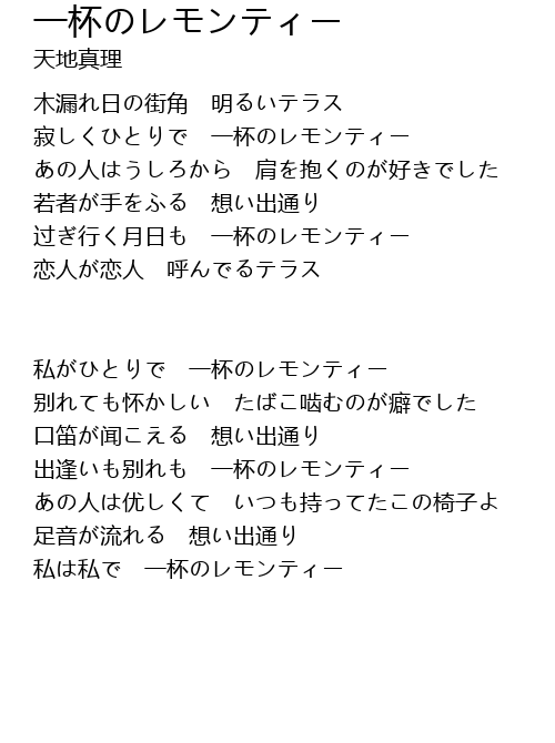 | Song | 一杯のレモンティー |