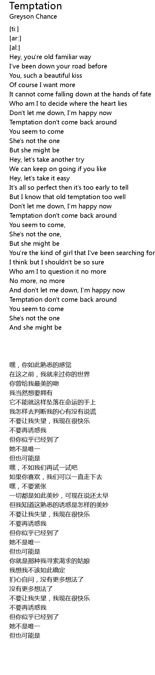 Temptation don't come back around |