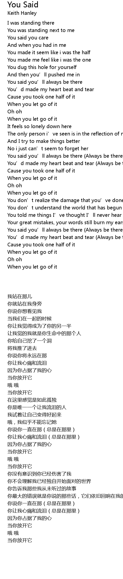 | [01:52] | You' d made my heart beat and tear Always be there |