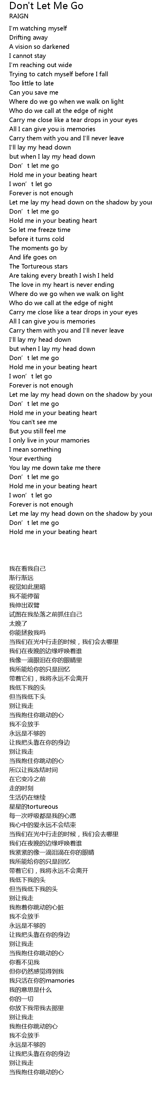 | [02:08.230] | Carry them with you and I' ll never leave |