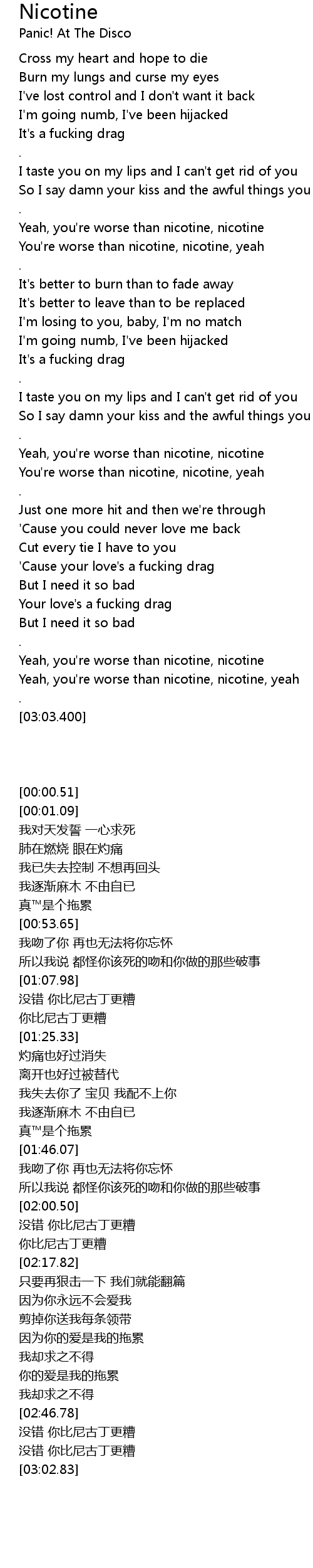 Yeah, you're worse than nicotine, nicotine, yeah |