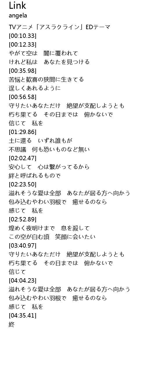 | [00:02.33] | TVアニメ「アスラクライン」EDテーマ |