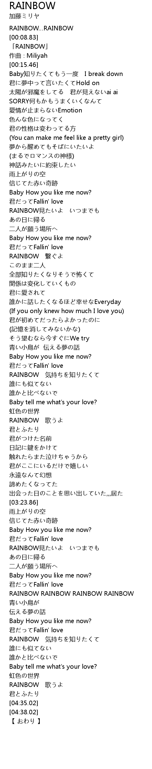 | [00:10.46] | 「RAINBOW」 |