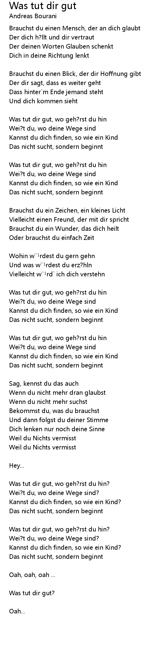 | Brauchst du einen Mensch, der an dich glaubt | |