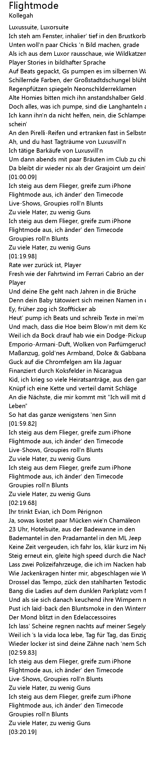 | [03:02.75] | Flightmode aus, ich nder' den Timecode |