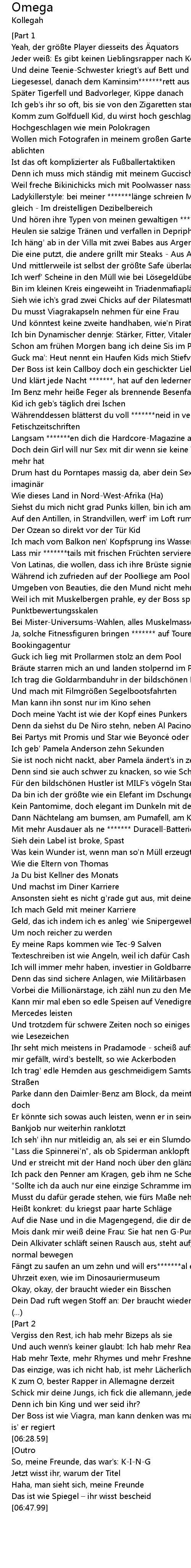 | [00:16.13] | Jeder wei: Es gibt keinen Lieblingsrapper nach Kollegah |