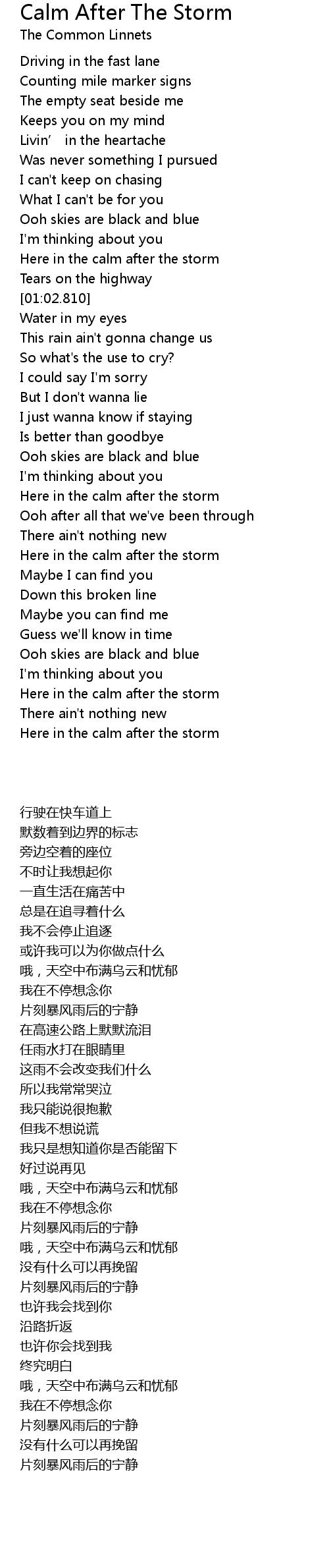 | [02:51.700] | Here in the calm after the storm |