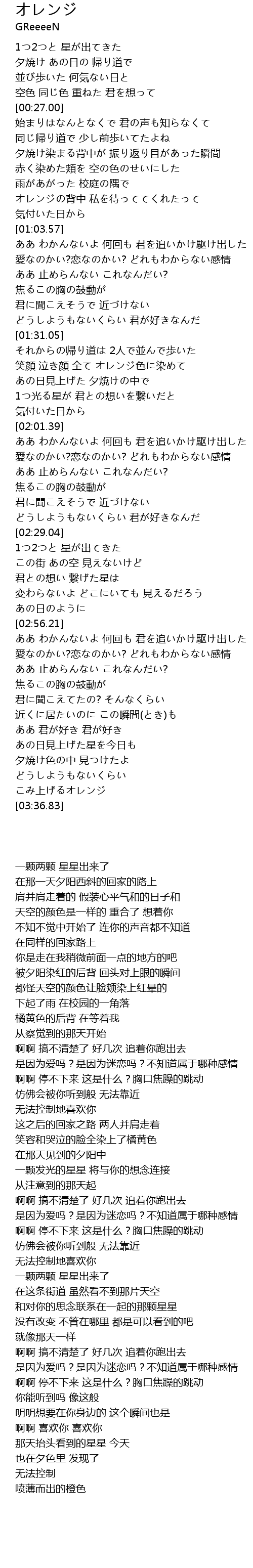 | [00:54.50] | オレンジの背中 私を待っててくれたって |