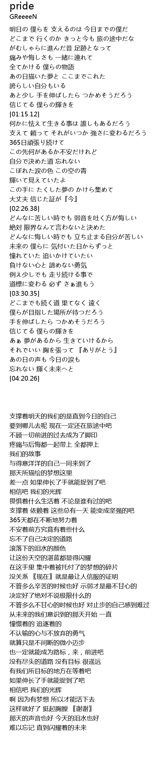 | [00:38.57] | 痛みや悔しさも 一緒に連れて |