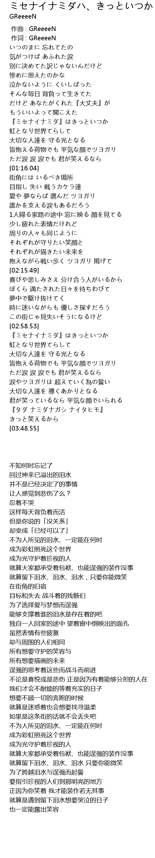| [02:59.23] | 『ミセナイナミダ』はきっといつか |