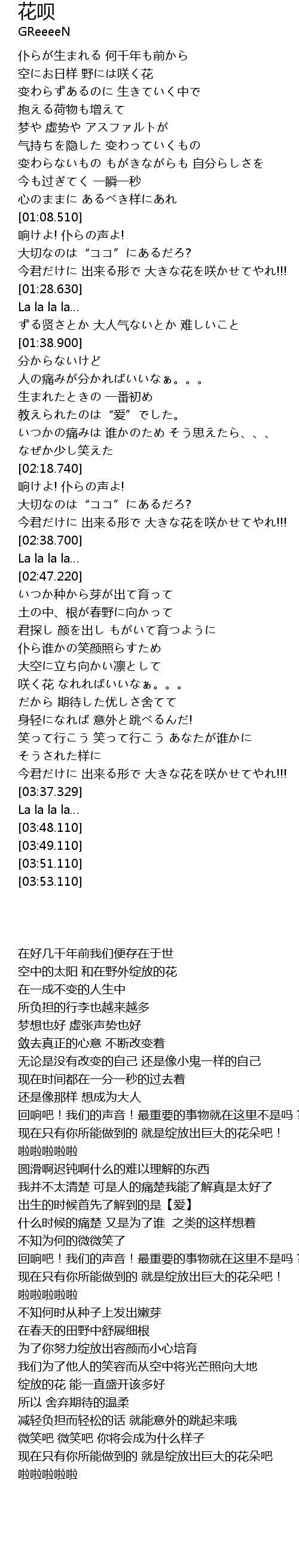 | [02:53.460] | 君探し 颜を出し もがいて育つように |
