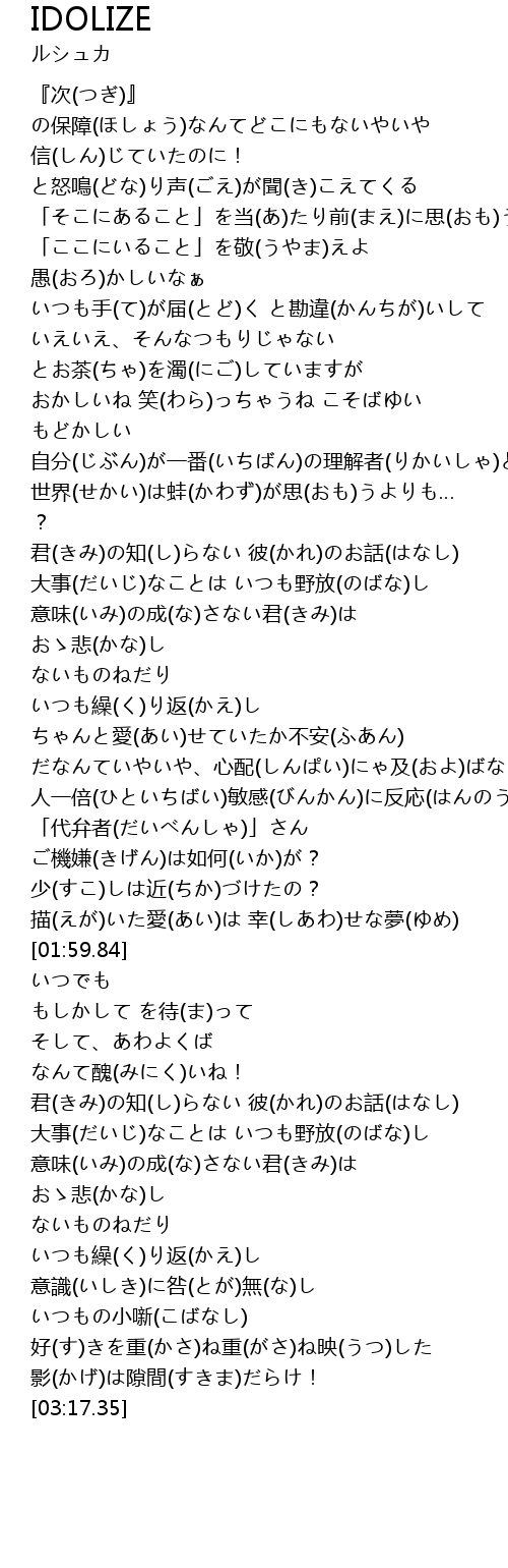 | [02:45.54] | 意味(いみ)の成(な)さない君(きみ)は |