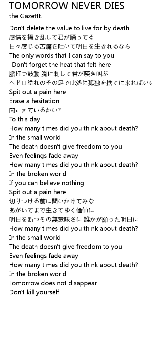 | Song | TOMORROW NEVER DIES |
