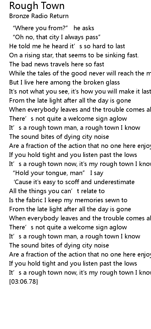 | [03:01.41] | It’s a rough town now, it's my rough town I know |