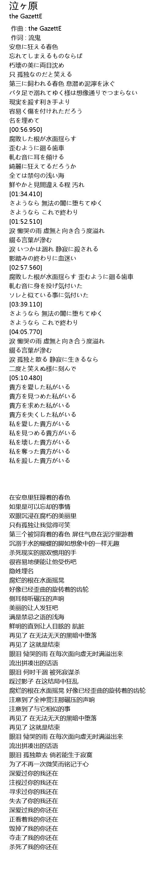| [00:00.00] | zuò qǔ : the GazettE |