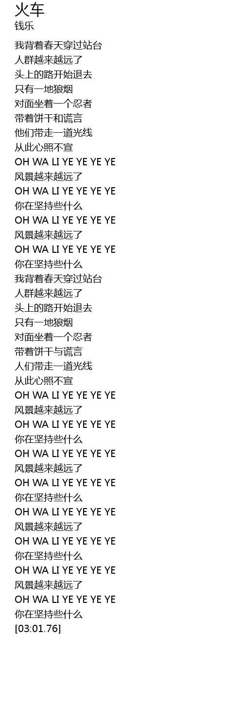 | [02:19.98] | OH WA LI YE YE YE YE |
