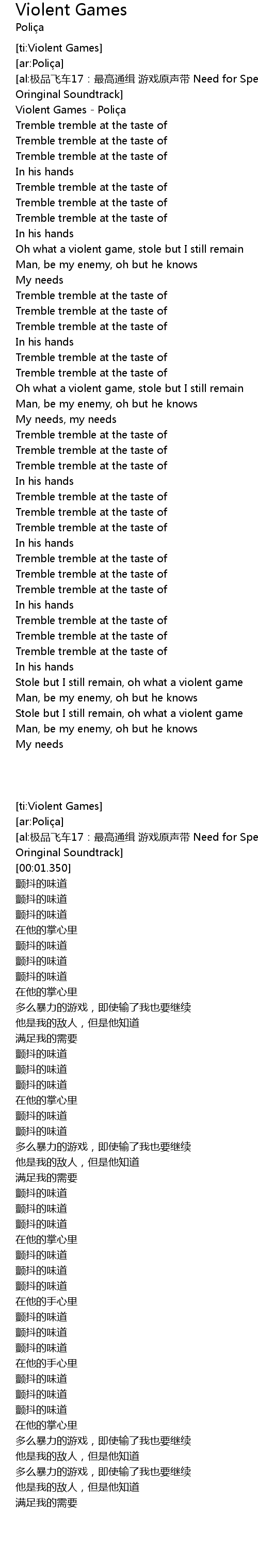 | [01:36.290] | Oh what a violent game, stole but I still remain |
