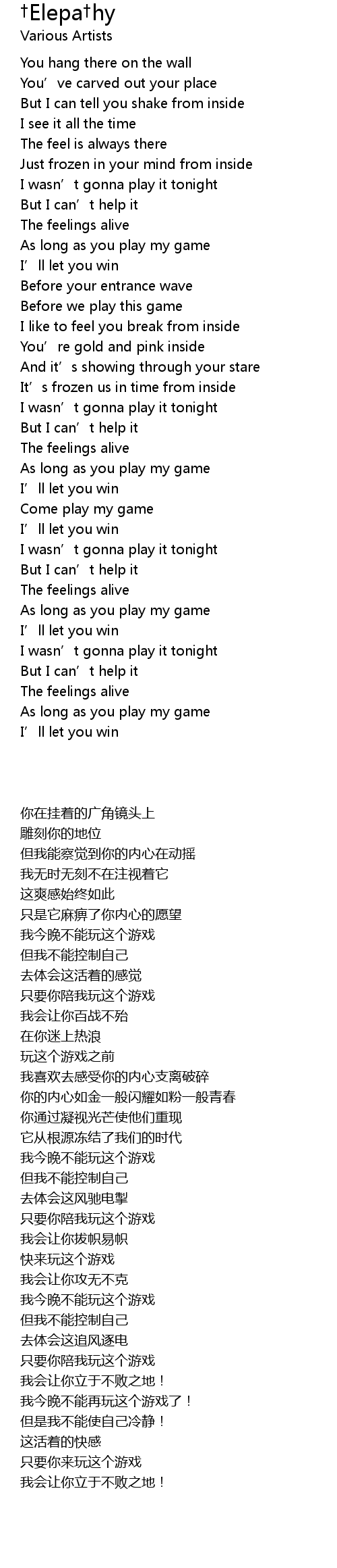 | [02:11.00] | Come play my game |