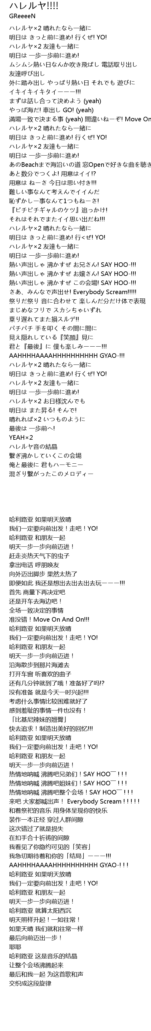 | hǎi! chē chū GO! yeah | |