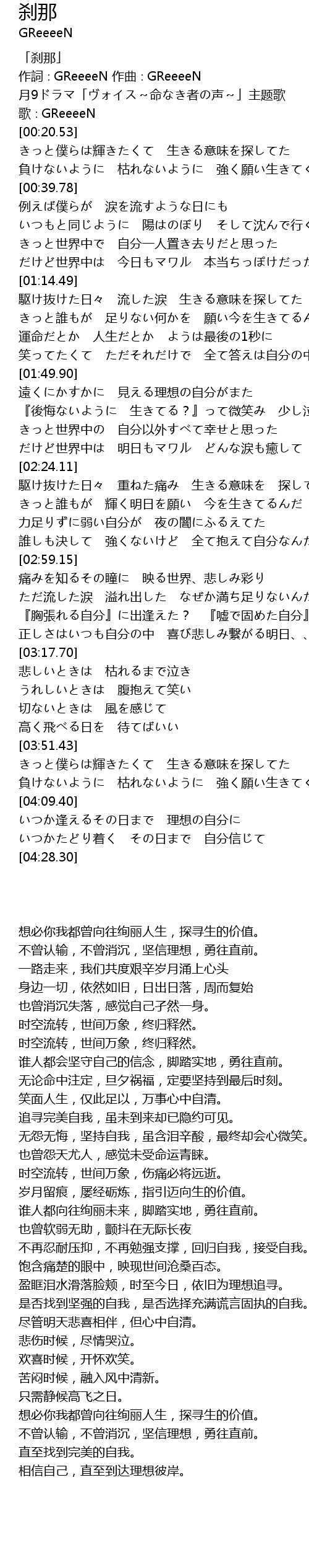 | [00:06.53] | zuò cí GReeeeN zuò qǔ GReeeeN |