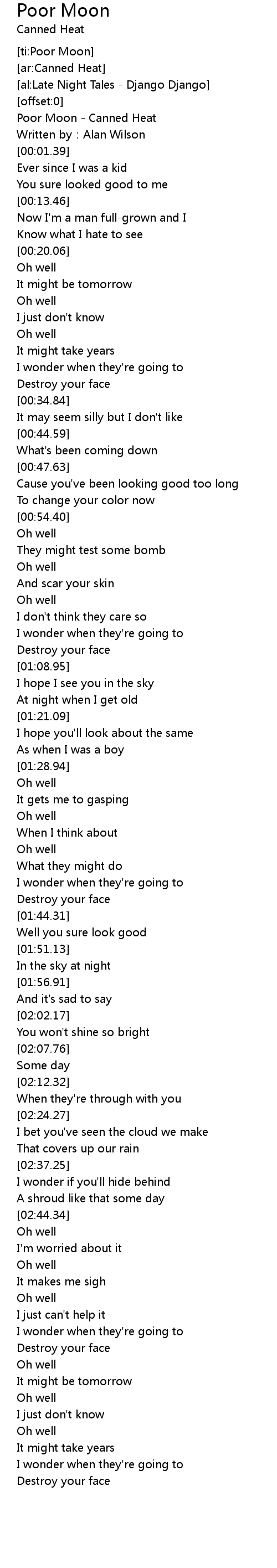 | [00:00.30] | Poor Moon Canned Heat |
