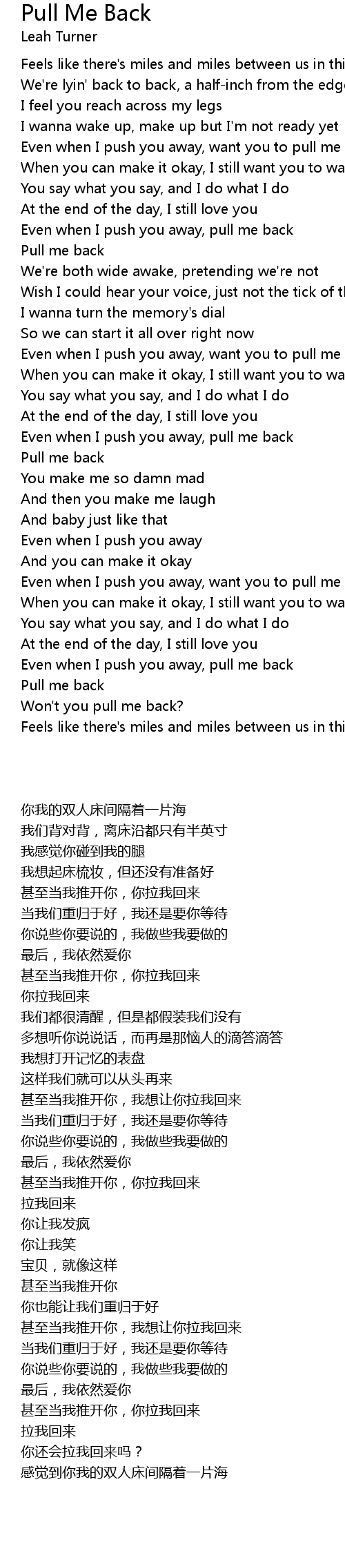 Even when I push you away, want you to pull me back |