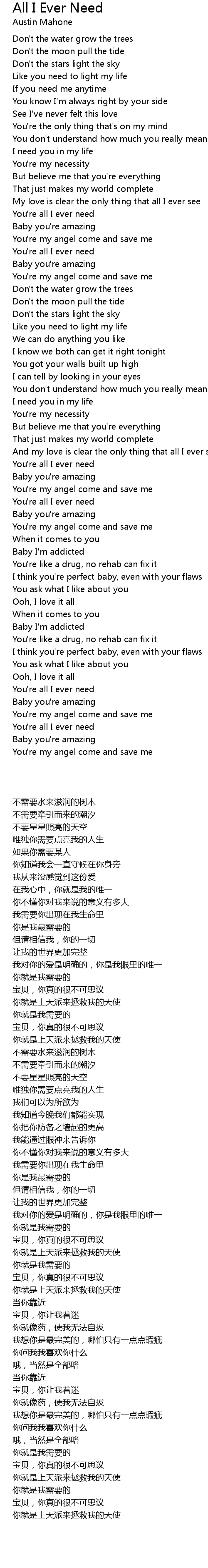 You're all I ever need |