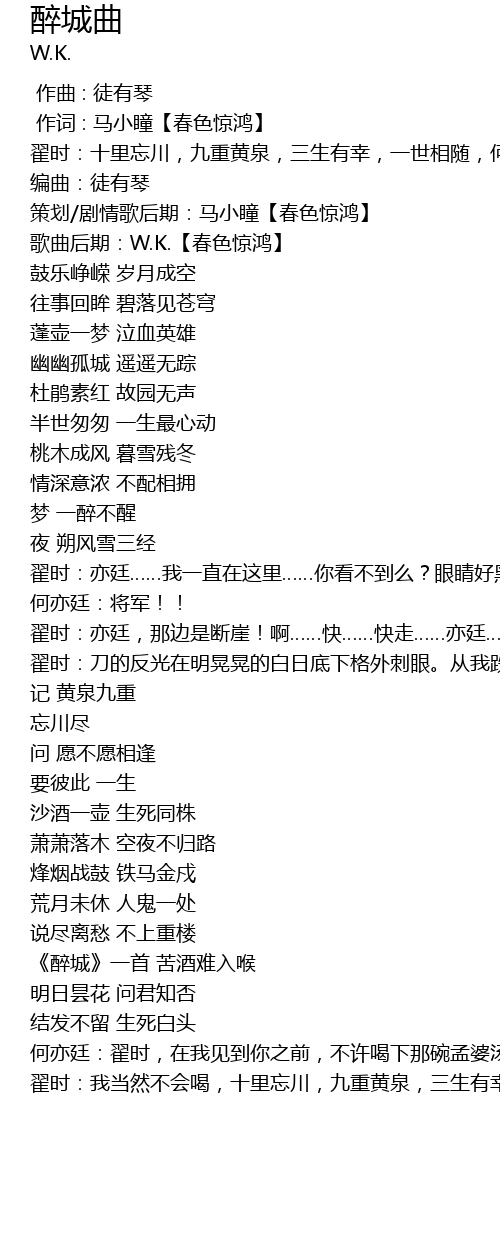 | [03:49.93] | 翟时:我当然不会喝,十里忘川,九重黄泉,三生有幸,一世相随,何亦廷,下辈子的结,你可不可以让我来打…… |