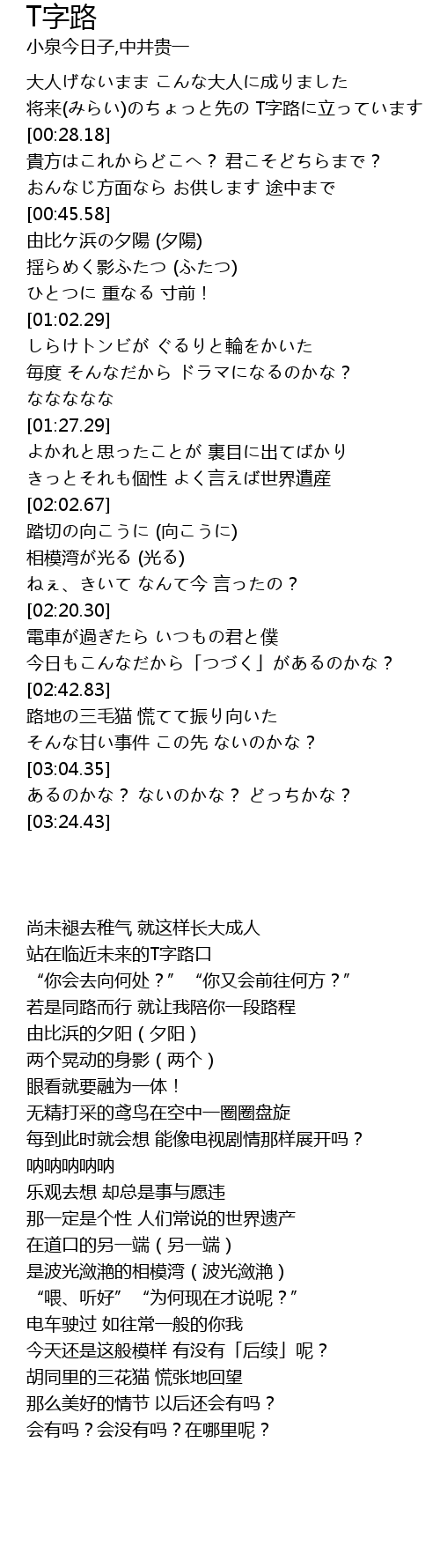 | [00:20.48] | 将来(みらい)のちょっと先の T字路に立っています |