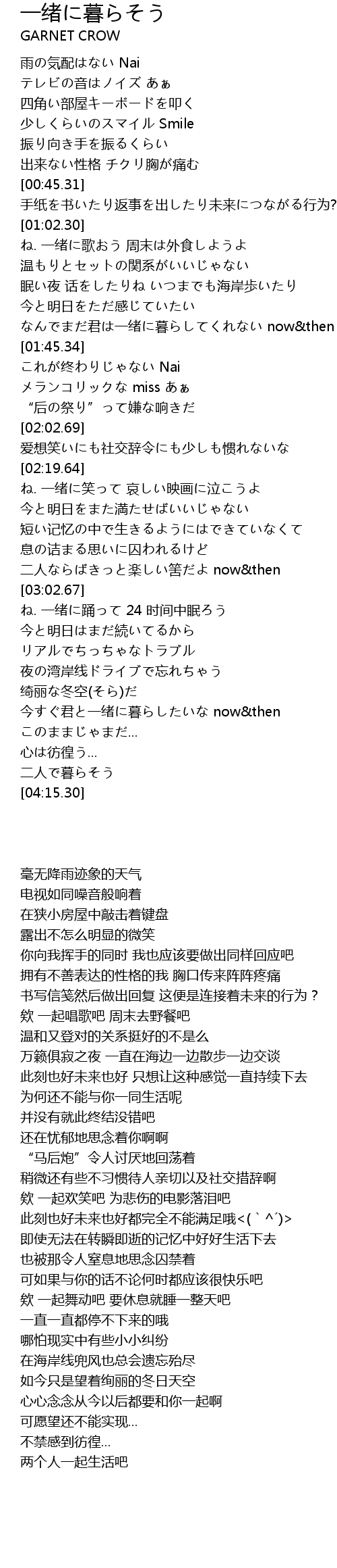 | [03:52.87] | 今すぐ君と一绪に暮らしたいな now&then |