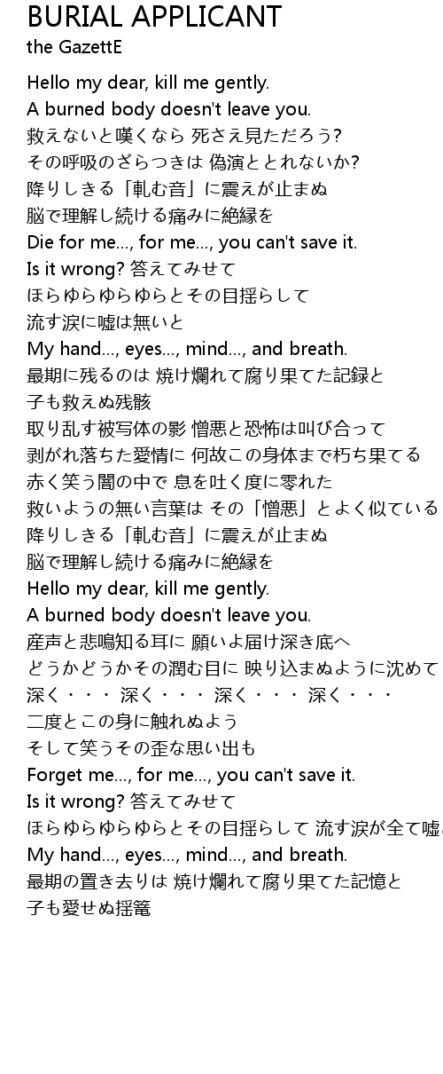 | Song | BURIAL APPLICANT |