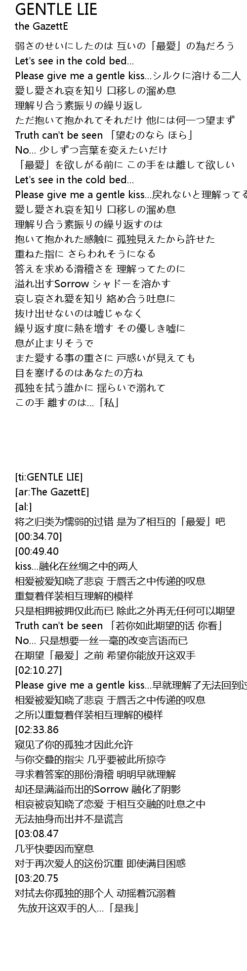 | Please give me a gentle kiss...戻れないと理解ってる | |