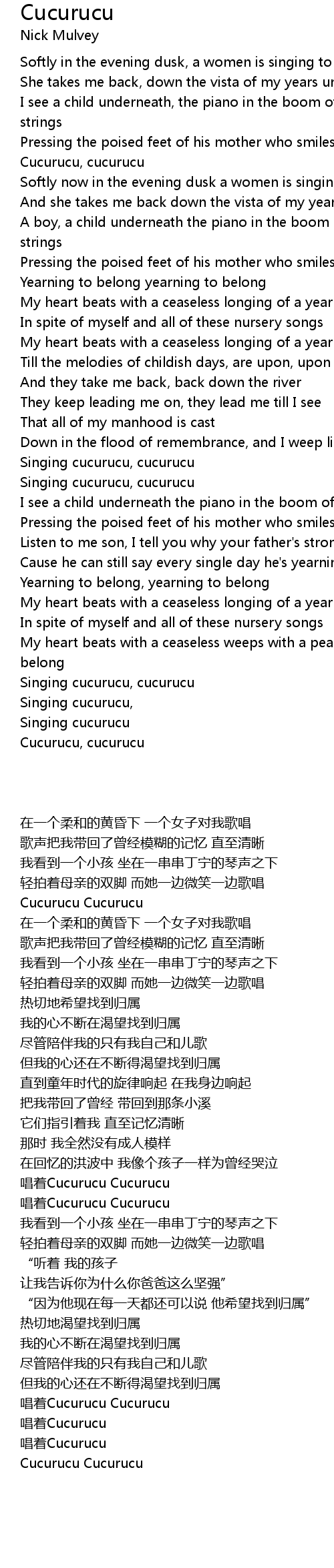 Singing cucurucu, |