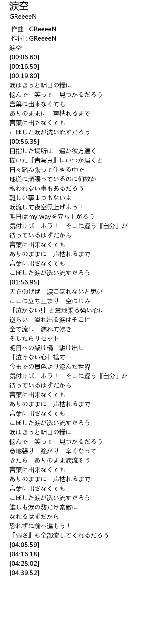 | [00:00.00] | zuò qǔ : GReeeeN |