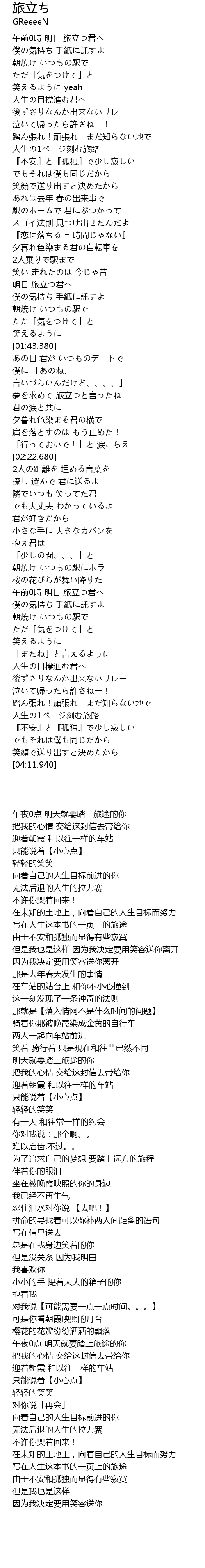 | [03:23.980] | 午前0時 明日 旅立つ君へ |