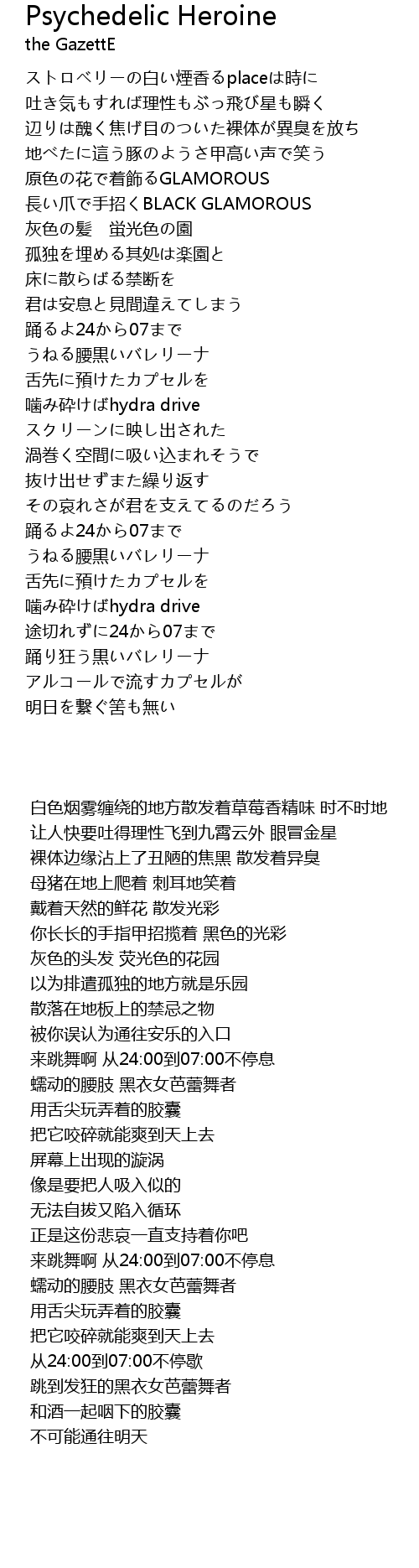 | [00:33.258] | 吐き気もすれば理性もぶっ飛び星も瞬く |